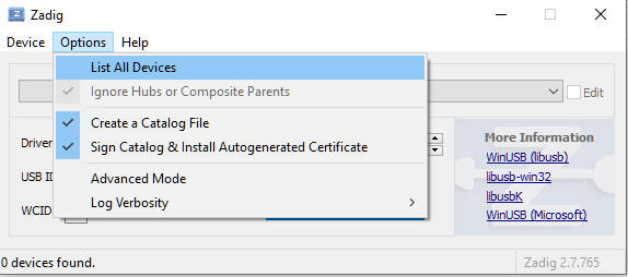 - Options -> List All Devices