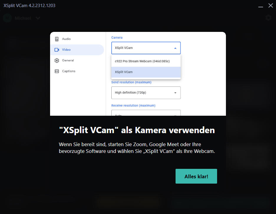 VCam: Webcam-Hintergrund-Software XSplit |