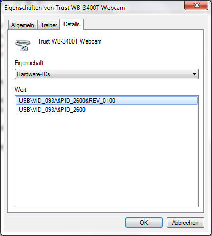 %USBPCamDesc% = SN.USBPCam,USB\VID_0c45&PID_607b ; SN9C102P + OV7660Die mitgelieferten Treiber erwarten ein anderen CMOS-Sensor und Hersteller