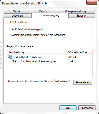 Informationen zur WebCam ---> Systemsteuerung ---> Geräte-Manager