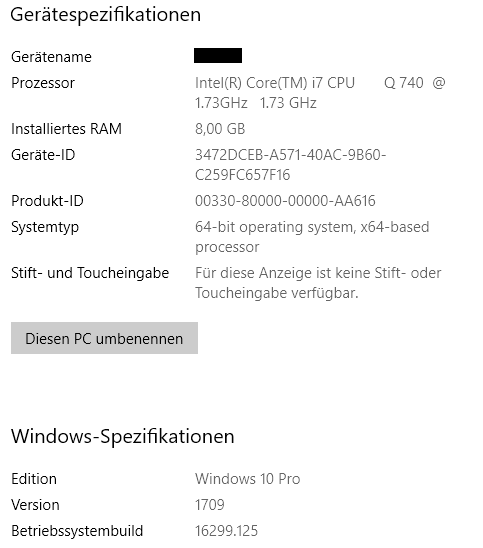 | Aktuelles OS: Windows 10 Pro, 64 bit | |